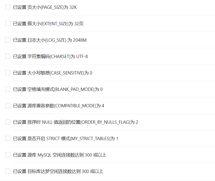 1)迁移使用工具为SQLark;迁移前需要勾选以下所有项