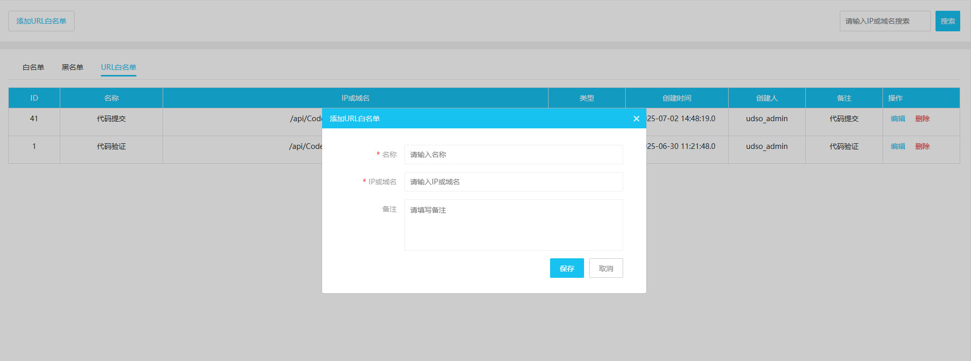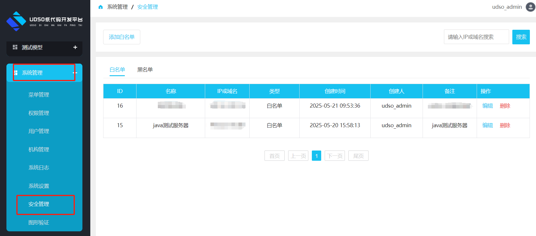 黑白名单可通过配套的低代码管理平台下系统管理-安全管理模块进行配置。