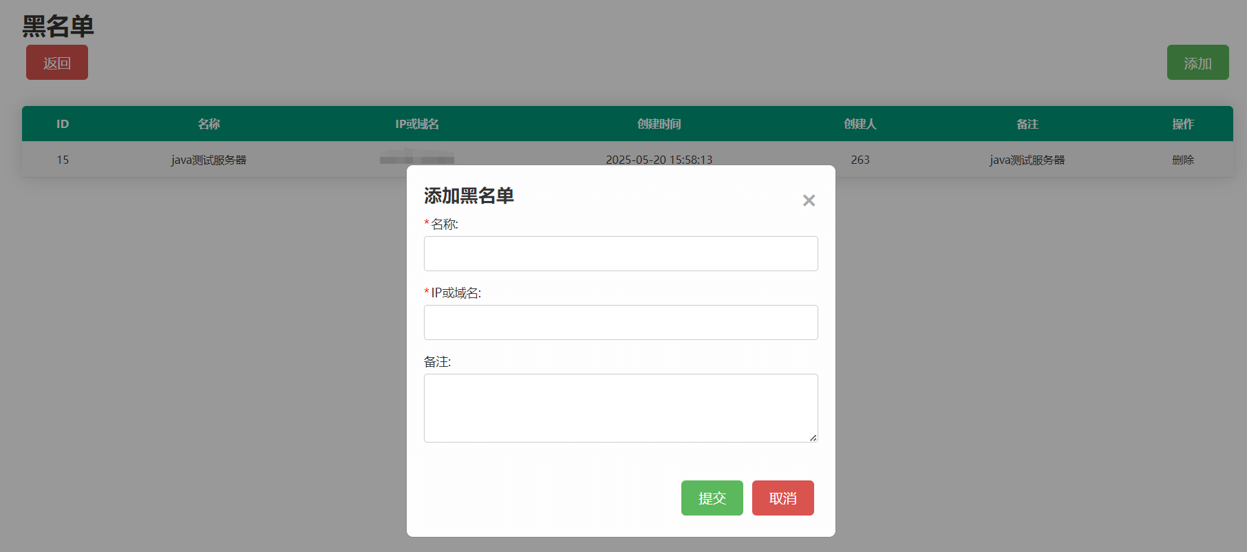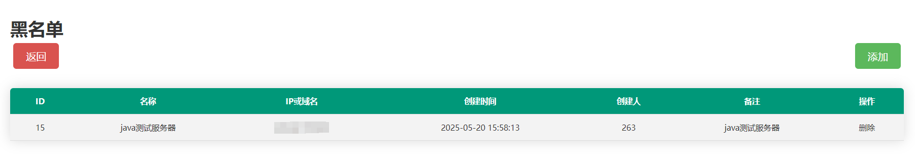 登录MICROBEE-HTTP MANAGEMENT管理平台后,跳转黑白名单列表,点击添加可以进行黑白名单配置。