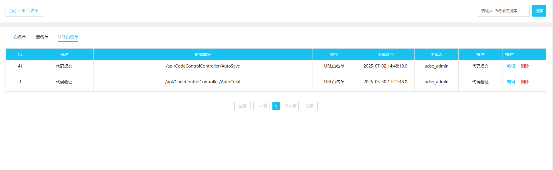URL白名单可通过配套的低代码管理平台下系统管理-安全管理模块进行配置。